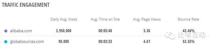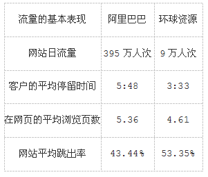 從其他三個指標看,無論是客戶的平均停留時間、在網(wǎng)頁的平均瀏覽頁數(shù)、網(wǎng)站平均跳出率來看,阿里巴巴也優(yōu)于環(huán)球資源。
