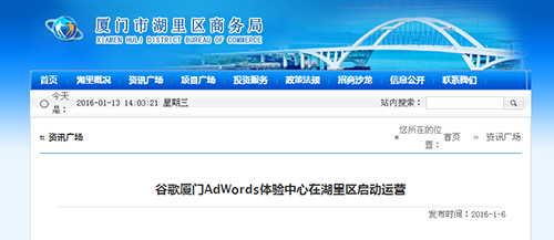 ? 湖里區(qū)商務(wù)局對(duì)廈門Google AdWords 體驗(yàn)中心項(xiàng)目啟動(dòng)事件的宣傳報(bào)道