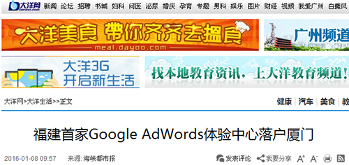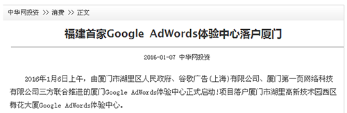 廈門Google AdWords 體驗(yàn)中心已于2016年1月6日正式啟動(dòng)。該項(xiàng)目的啟動(dòng)受到了政府的大力支持以及眾多媒體的持續(xù)關(guān)注。