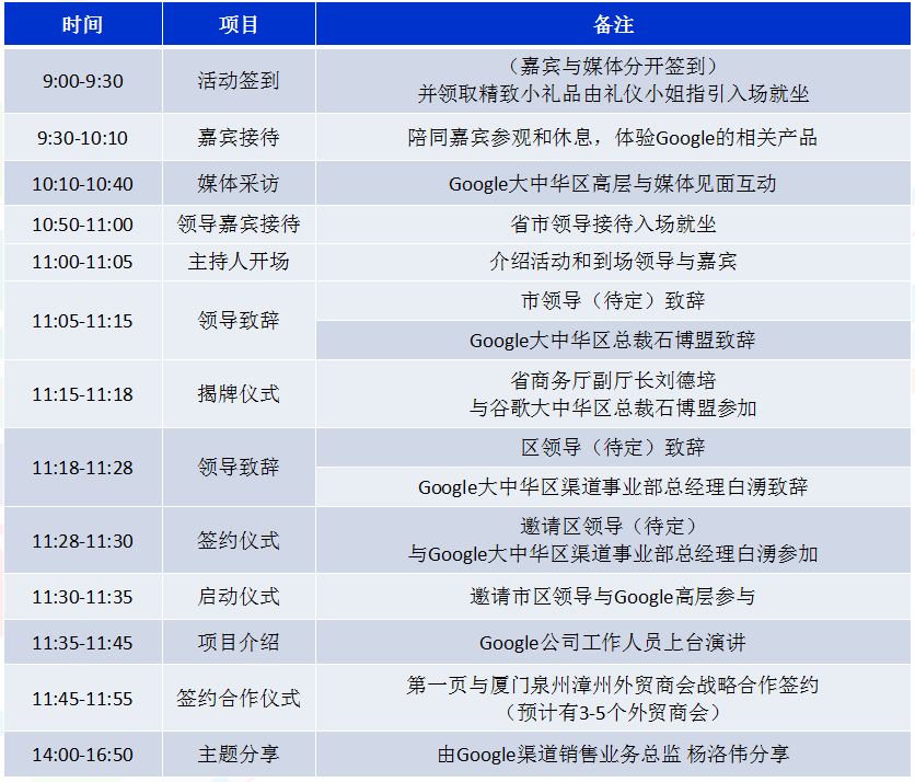 ? 參會(huì)人員 政府領(lǐng)導(dǎo) Google高層領(lǐng)導(dǎo) 地方企業(yè)高管 地方外貿(mào)商會(huì)協(xié)會(huì) 新聞媒體