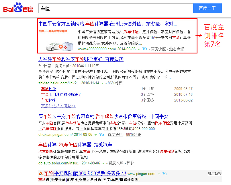 車險:目前百度左側(cè)自然排名首頁第7名